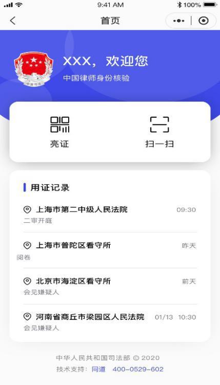 9月9日,司法部發(fā)布的“中國律師身份核驗(yàn)平臺(tái)”正式上線試運(yùn)行,在最高人民法院的支持與配合下,提倡律師更方便參與訴訟活動(dòng)而設(shè)立。使用規(guī)則也非常簡單,律師只需要在微信小程序中搜索“中國律師身份核驗(yàn)”,通過人臉識(shí)別進(jìn)行驗(yàn)證審核身份后,即可使用“亮證”和“掃一掃”功能。